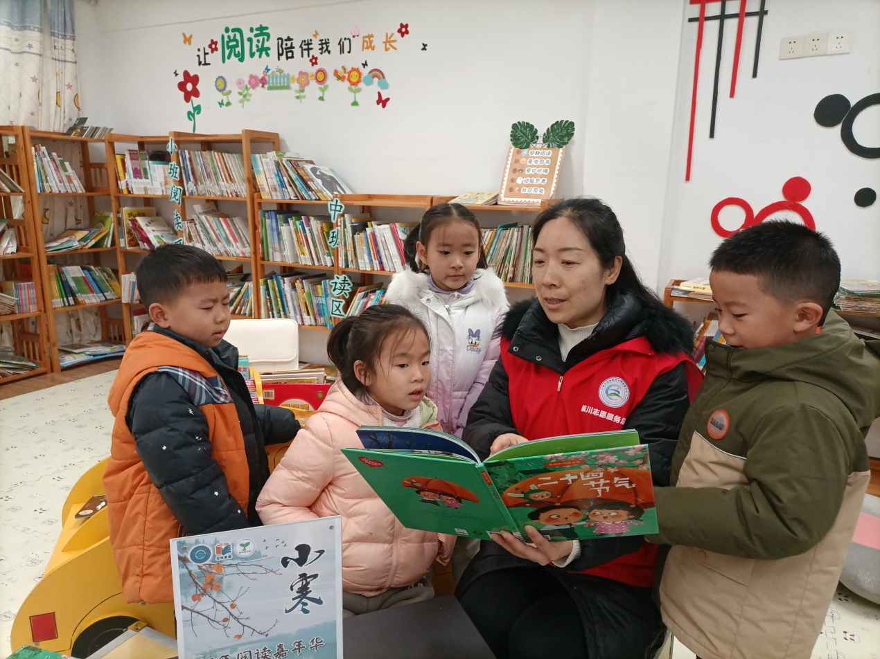 “葵影便移长至日,梅花先趁小寒开”,“已有岸旁迎腊柳,参差又欲领春来”,小寒时节,梅花开始吐蕊绽放,一枝枝,一树树,成为寒冬里最俏的报春花。节气物候是大自然的“语言”,它将复杂的气候变化转化为生动美丽的物候现象,尽情展现了节气的自然与文化之美。在幼儿园课外阅读角,小朋友们围绕在全民阅读推广志愿者的身旁,一起阅读与小寒节气相关的古近代诗词,共同品味小寒节气之美。