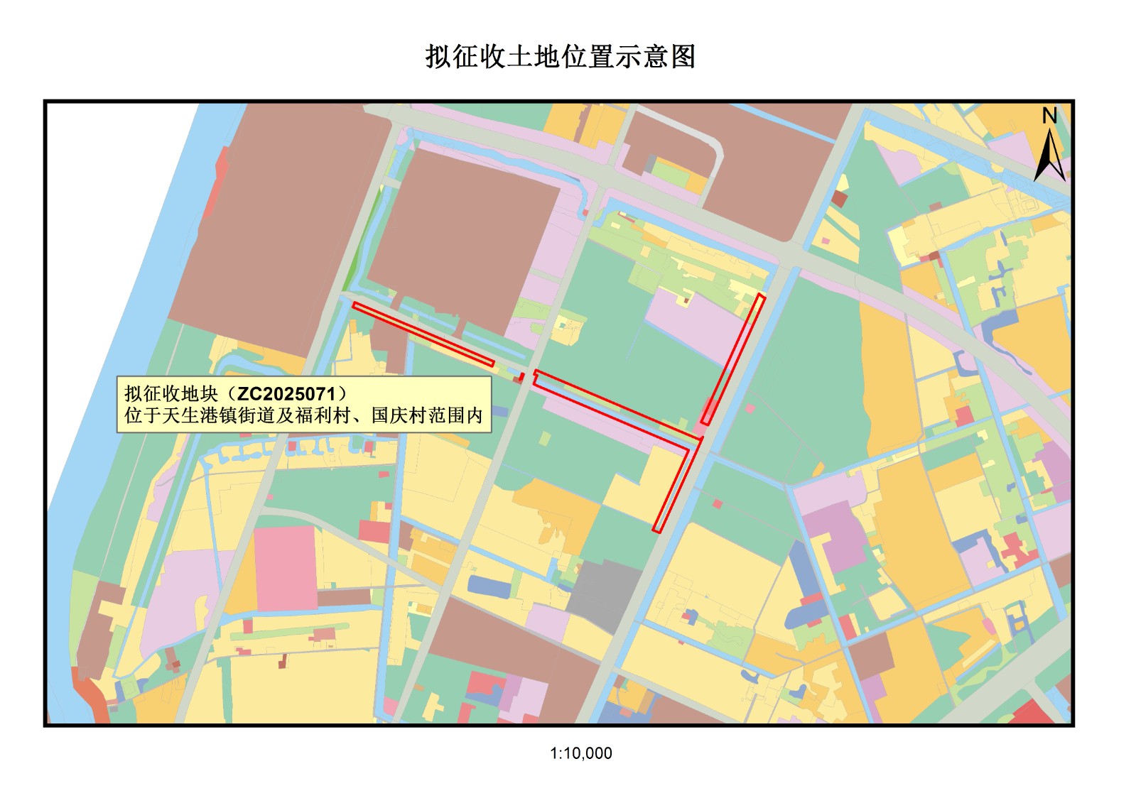 本次拟征收土地位于天生港镇街道及福利村、国庆村范围内,拟征收土地范围详见附图。